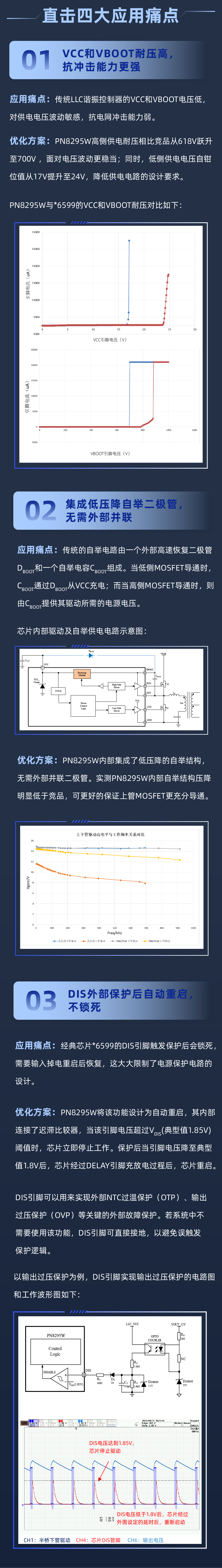 LLC谐振变换器在全负载范围内能精准实现主开关管零电压开通(ZVS)、整流管零电流关断(ZCS)堪称中大功率开关电源设计中的“效率担当。本期芯朋微技术团队带来重磅解决方案工业级电压控制模式LLC谐振控制器PN8295W,针对经典芯片*6599应用痛点逐一突破。
