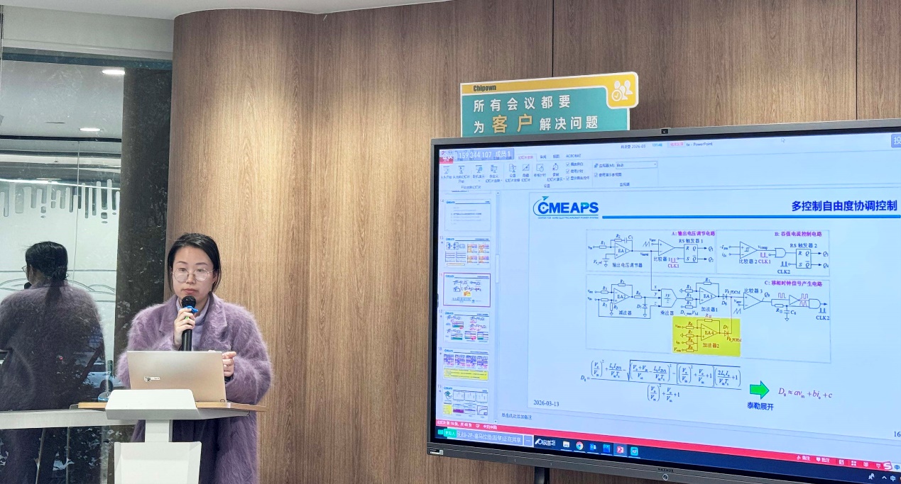 交流会上,芯朋微专家团队与南航师生开展了深度学术交流。南航学生代表先后汇报了“并网逆变器锁相环和功率环的对称控制方法”、“全域非谐振式 PWM 软开关变换器” 两大课题的最新研究成果,双方与会人员围绕研究成果的工程化落地可行性展开细致探讨,充分交换技术思路与实践经验。